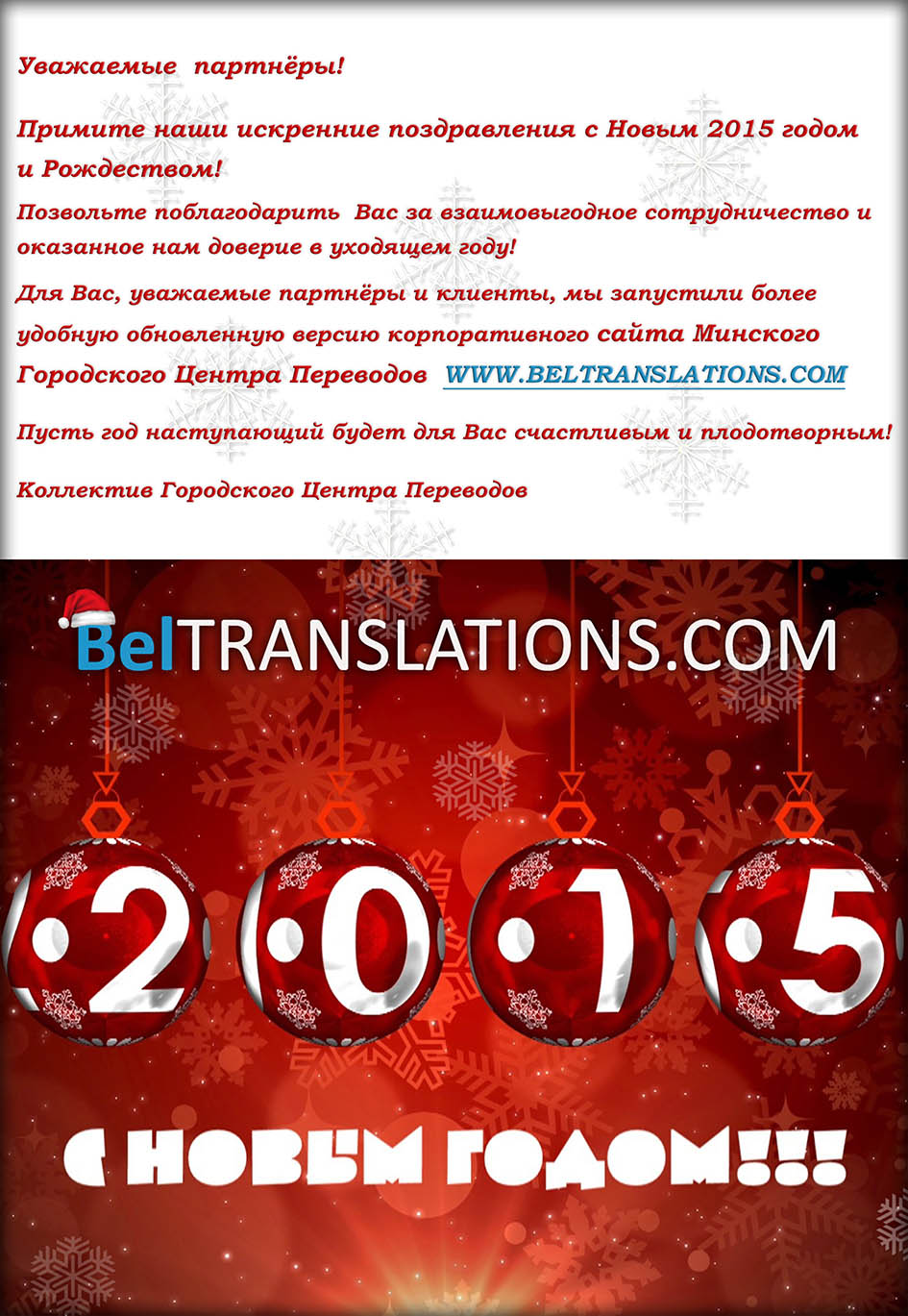 Уважаемые Партнеры, примите наши искренние поздравления с Новым 2015 годом и Рождеством!