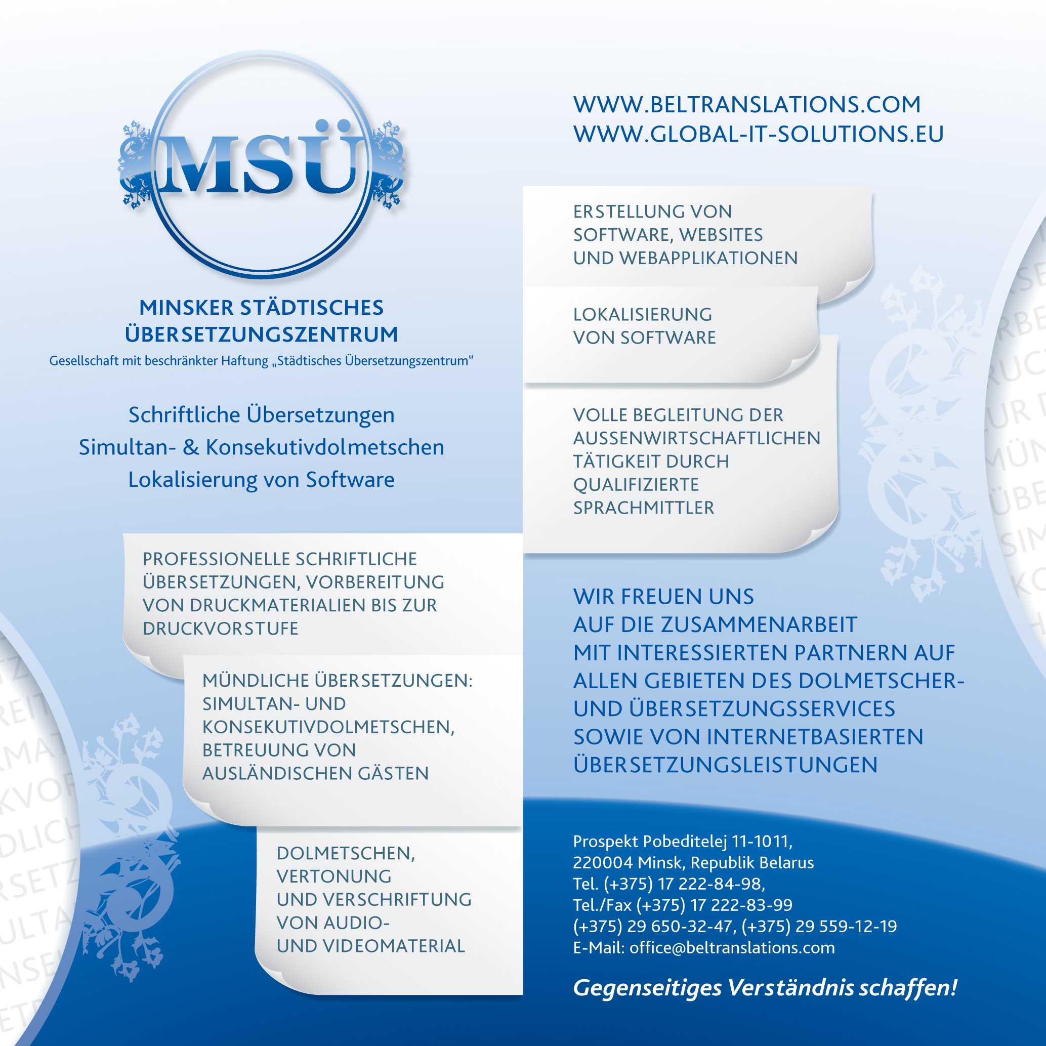2013-11-04 23:37:00 Публикация в новостном бюллетене Представительства немецкой экономикиПубликация информации о Минском Бюро Переводов в новостном бюллетене Представительства немецкой экономики в Республике Беларусь. |